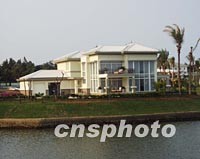 以別墅群為主的海南博鰲金海岸大酒店二期工程于月前新峻工近五十套,將承擔四月中旬舉行的博鰲亞洲論壇首屆年會貴賓接待任務。圖為在綠水之央的總統(tǒng)別墅,尊貴中透著典雅宜人。中新社圖 王辛莉 攝