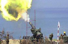 臺軍日前在屏東進行大口徑榴彈炮實射操演。(法新圖)