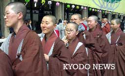 圖文:韓國佛教界為世界杯出力 為大賽成功祈禱 2002年04月10日 15:52 ![]() 參加祈禱日韓世界杯成功舉行集會的韓國僧尼們(9日下午共同社記者記者攝于漢城市內(nèi))