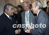 博鰲亞洲論壇首屆年會(huì)十三日在海南閉幕,澳大利亞前總理霍克(中)等前政要等出席年會(huì)閉幕新聞發(fā)布會(huì)。作者:滿會(huì)喬