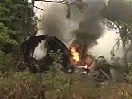 多圖:失事客機(jī)墜落后發(fā)生爆炸并燃燒
