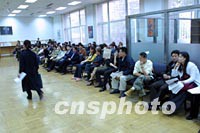 國航客機15日在韓國墜毀以后,當天下午去韓國大使館辦理簽證的人們依然有序的在領號、排隊、辦理簽證。中新社記者 史利 攝