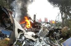 圖:救援人員在飛機墜毀現場