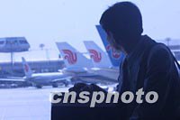 一位旅客十七日站在北京機場的候機室,久久地望著停機坪上的飛機。中國國際航空公司的客機失事之后,旅客更加關注航空安全。中新社記者 史利 攝