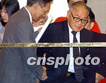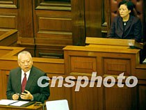=香港特首董建華,4月17日向立法會(huì)介紹政府機(jī)制改革的“高官問(wèn)責(zé)制”,政壇元老鍾士元出席旁廳。任晨鳴 攝