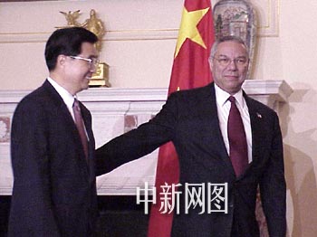 圖:胡錦濤與美國國務卿鮑威爾會晤