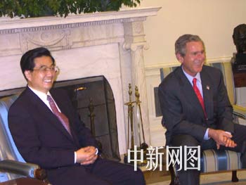 多圖:胡錦濤副主席與美國總統(tǒng)布什舉行會晤 2002年05月02日 08:48 ![]() 美國當(dāng)?shù)貢r間五月一日下午,美國總統(tǒng)布什在白宮會晤中國國家副主席胡錦濤。中新社 徐德金/攝 ![]() 美國當(dāng)?shù)貢r間五月一日下午,中國國家副主席胡錦濤在白宮與美國總統(tǒng)布什舉行會晤。圖為胡錦濤、布什微笑面對攝影記者短暫拍照。中新社 徐德金/攝 ![]() 美國當(dāng)?shù)貢r間五月一日上午,中國國家副主席胡錦濤與美國副總統(tǒng)切尼舉行會談。圖為胡副主席抵達(dá)白宮時向守候的記者揮手致意。中新社 徐德金/攝 中新網(wǎng)華盛頓五月一日電(記者徐德金)美國當(dāng)?shù)貢r間五月一日下午,中國國家副主席胡錦濤與美國總統(tǒng)布什舉行會晤。 會晤在白宮橢圓型辦公室舉行。在開放給媒體攝影記者短暫拍照時,布什、胡錦濤滿面微笑、頻頻握手,布什還風(fēng)趣地對記者說,“再拍一張”。 五月一日上午,胡錦濤與切尼副總統(tǒng)在白宮舉行了會談。胡副主席是應(yīng)切尼副總統(tǒng)的邀請訪問美國的。 下午,胡錦濤還會晤了美國總統(tǒng)國家安全顧問賴斯。 今天,大批媒體記者守候在白宮,采訪胡錦濤副主席與美國領(lǐng)導(dǎo)人的會晤、會談。 胡錦濤副主席今天在五角大樓還會晤了美國國防部長拉姆斯菲爾德。