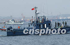 圖:救援船在5·7空難海上現(xiàn)場(chǎng)打撈殘骸