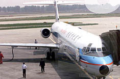 一架北方航空公司的麥道飛機5月8日在昆明機場上,準備正常起飛。該公司的一架麥道82型客機5月7日晚在大連墜毀。中新社記者 毛建軍 攝