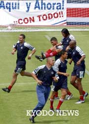 哥斯達黎加隊在日本鈴鹿市進行首次訓練(圖) 2002年05月15日 14:42 ![]() 哥斯達黎加國腳們進入集訓地后立刻開始訓練(14日上午攝于三重縣鈴鹿市的運動場=共同社) 中新網(wǎng)北京5月15日消息:世界杯參賽國——哥斯達黎加國家隊14日在三重縣鈴鹿市的運動場內進行了首次訓練,開始了備戰(zhàn)世界杯正式比賽的調整訓練。 據(jù)“共同社”報道,哥斯達黎加隊作為首支到達日本的世界杯參賽國于13日晚上到達鈴鹿市。在主教練吉馬雷斯的指揮下,23名球員在用球訓練中進行了小比賽等,大聲呼喊汗流浹背。右膝傷病令人擔心的主力前鋒萬喬普也展示了輕快的動作。 吉馬雷斯主教練表示“訓練環(huán)境非常好。我們的目標是在世界杯中盡可能走得遠一點。總之和中國隊進行的首場比賽非常重要。”哥斯達黎加隊將在鈴鹿市集訓到23日。