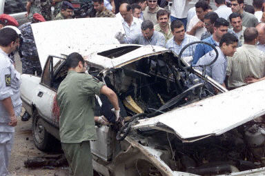 黎巴嫩首都貝魯特市中心今日中午發生一起汽車炸彈爆炸事件,解放巴勒斯坦人民陣線(總指揮部)書記艾哈邁德·賈布里勒的兒子被當場炸死。圖為工作人員清理現場。中新網圖