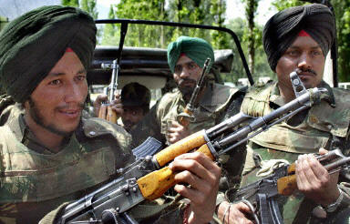 印度總理瓦杰帕伊5月22日來到克什米爾邊境地區(qū)進(jìn)行視察,并向守衛(wèi)在那里的士兵發(fā)表演講。圖為印度軍隊士兵進(jìn)行安全巡視。法新供中新