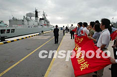 由“青島號”艦、“太倉號”艦組成的中國海軍首次環(huán)球航行訪問艦艇編隊,五月二十三日上午抵達新加坡海軍基地樟宜港,開始對新加坡進行為期3天的友好訪問。這是中國人民海軍艦艇編隊首次對新加坡進行友好訪問。中新社圖 躍勝岐 攝