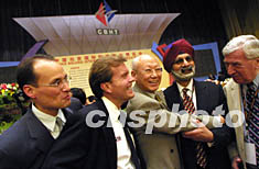 出席第五屆北京國際科技產(chǎn)業(yè)博覽會的各國代表在開幕式上暢快地交流。第五屆科博會二十三日在北京舉行主題報告暨開幕會。中新社記者 鄭萍萍 攝