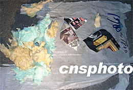 二十五日,臺灣發現華航失事班機掉落的雜志與棉碎片。中央社攝/中新社