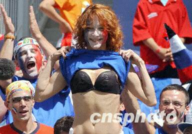 圖:法國瘋狂女球迷看臺上掀起上衣