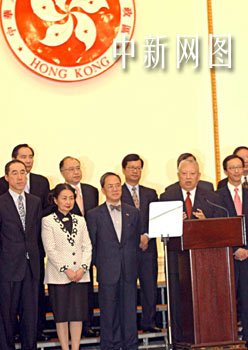 董建華宣布“新內閣”名單。香港特首董建華6月24日在香港禮賓府宣布二十一名“新內閣”成員名單。中新社傳真洪少葵攝