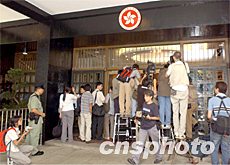 6月24日香港特首董建華宣布了新一屆“內閣”名單后,各位高官在政府總部大堂依次會見傳媒,眾多記者在政府總部大堂等待。中新社傳真 任晨鳴 攝