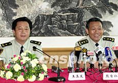 中國人民解放軍駐香港部隊司令員熊自仁中將(左)、政委王玉發(fā)少將,6月28日在中國人民解放軍駐香港部隊大廈會見媒體,就香港回歸五周年來解放軍駐港部隊的全面情況回答記者問。任晨鳴 攝
