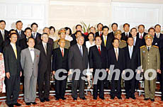 六月三十日晚,國家主席江澤民在香港出席特區政府成立五周年慶祝晚宴,并與“高官”及香港知名人士合影。潘索菲 攝