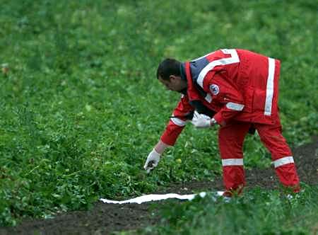 圖:德國紅十字會人員發現失事飛機上的殘余物