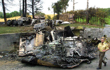 圖文:一警官從墜毀的圖-154殘骸前經過