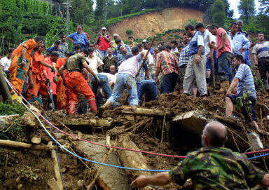 土耳其一些地區過去兩天連降暴雨山洪爆發,造成23人死亡。圖為洪水引發山體滑坡,建筑物倒塌,人們正在進行營救工作。
