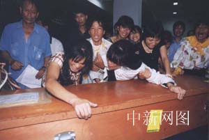 圖為許恒勇的親屬哭倒在他的棺木上。中新社記者 劉可耕 攝
