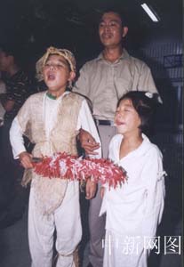 圖為李斌的一雙兒女披麻戴孝迎接父親棺木。中新社記者 劉可耕 攝