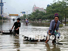 受今年十四號熱帶風暴“黃蜂”的影響,十八日至十九日廣東肇慶普降大雨。僅市區內總降雨量就達七十三毫米,市區許多道路被水淹,其中西江路水深超過一米,成了“水患區”,造成交通中斷。作者:黃耀輝
