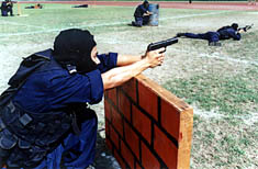 圖為防暴警察處置突發事件模擬實戰射擊表演