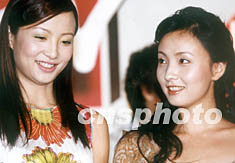 日前,2002MTV-萊卡風尚頒獎大典新聞發布會在北京王府飯店舉行。圖為獲獎影星陶紅(左)、陶虹(右)同登頒獎大典臺。錢興強 攝