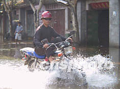 日前,湖南洞庭湖水上漲,使位于該湖與長江交叉處的城陵磯鎮多處被淹。急于辦事的居民無奈之下,只好逢水過水。中新社圖 白祖偕 攝