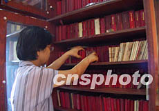 湖南省收藏協會副會長、收藏家張曼玲女士30日向媒體展示她珍藏的八十四種不同文字、八千三百多種不同版本的毛澤東著作版本系列。其中不少版本十分珍貴。作者:白祖偕