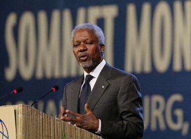 安南指出,人類所熟悉的發展模式對極少數人是有成效的,但“對大多數人來說卻存在缺陷”。發達國家應帶頭履行已達成的相關國際公約,因為這些國家“擁有財富和技術”,給全球環境造成的問題更大。