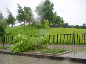 盡管離“森拉克”登陸還有2、3個小時左右,但臺風的影響已給溫州造成部分破壞。(董晶亮)