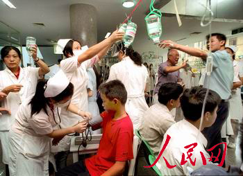 令他萬分欣慰的是,他得知女兒是住在該院的中毒者中情況最好的。他說,9月14日上午大約7時10分鐘,孩子從校門口一家燒餅店買來兩塊燒餅,吃了一個半,不到7時30分,人就發(fā)作了,在送往鎮(zhèn)醫(yī)院的途中,吐過一次。孩子的癥狀較輕,可能與這次及時嘔吐有關(guān)。但醫(yī)生說,要觀察一周以后,才能最后確定病情,因為毒素已經(jīng)進入了血液。他說,難怪昨天看到有的中毒者白天還比較好,可是,到晚間卻又發(fā)作了。