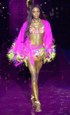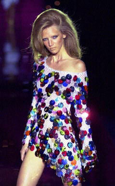 當地時間9月14日,在英國倫敦時裝周上,模特展示時裝設計師設計的2003春夏時裝作品。