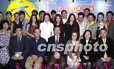 大型歌舞晚會《香江中秋夜》9月18日在香港舉行新聞發布會,出席表演嘉賓陣容強勁,國內及香港當紅的歌星將參與演出,圖為一眾內地著名藝人與節目主辦單位高層會上合照。鄧慶樂 攝