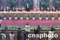 中新社北京九月二十二日電(記者姜知然張朔)“紀(jì)念中日邦交正常化三十周年友好交流大會”今晚在人民大會堂舉行,江澤民、胡錦濤、錢其琛等中國領(lǐng)導(dǎo)人與橋本龍?zhí)傻纫蝗f三千余名日本來賓一起,共同回顧并展望了兩國友好關(guān)系的發(fā)展。