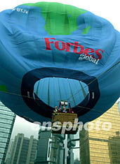 福布斯第二屆全球行政總裁會議9月24日在香港開幕,碩大的“福布斯熱氣球”24日下午載著福布斯集團總裁史蒂夫福布斯和香港投資推廣署署長盧維思在香港中環添馬艦升起。任晨鳴 攝