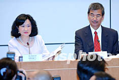 香港保安局局長(zhǎng)葉劉淑儀(左)、署理保安局常任秘書長(zhǎng)湯顯明,9月24日在政府總部公布有關(guān)《基本法》第二十三條的諮詢文件。洪少葵 攝