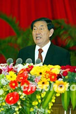 他指出,今年是中國發展史上具有重大意義的一年。國民經濟保持良好發展勢頭。經濟結構調整取得新進展。經濟體制改革繼續深化。社會保障體系不斷完善,再就業工作進一步加強。整頓和規范市場經濟秩序深入展開?平膛d國戰略和可持續發展戰略實施力度加大。在加入世貿組織第一年,對外開放進一步擴大,進出口貿易和利用外資顯著增加。