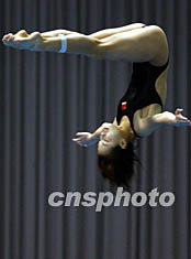 中國姑娘吳敏霞在十月十日舉行的釜山亞運女子跳水三米板比賽中獲銀牌。作者:潘索菲