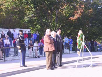 今天,在阿靈頓國家公墓,朗朗晴空下,一群白發蒼蒼的耄耋老人,一群當年在反法西斯戰爭中并肩作戰的中美老兵們,向犧牲的戰友們獻上了花圈。不遠處是“二戰”中犧牲的美軍官兵的墓碑,更遠處是“九一一”中遭受恐怖襲擊的五角大樓。明媚的秋日中,人們神情肅穆,祈求安寧與和平。