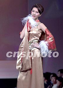 中國名模劉多十八日晚參加在廣州舉辦的二00二廣東(秋季)時裝周,并領銜演繹廣東絲麗國際集團的品牌服飾。作者:劉衛(wèi)勇