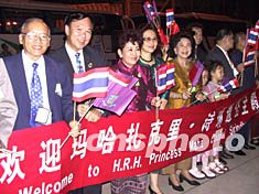 專程從泰王國飛抵海口迎接詩琳通公主的一百多名泰國海南鄉(xiāng)親,在機場拉起了寫著泰文與中文的橫幅,揮舞著中國、泰國國旗,在十五的滿月下笑迎詩琳通公主。