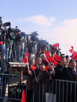 訪問期間,江澤民主席將與布什總統舉行會晤,就雙邊關系和其他共同關心的問題深入交換看法。美國和各國駐美新聞機構均對江澤民此次訪問給予極大關注。圖為江澤民抵達芝加哥奧海爾國際機場時記者爭先采訪的現場。