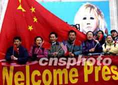 江澤民主席應布什總統邀請訪問美國,22日抵達芝加哥奧黑爾機場,受到當地華人華僑的熱烈歡迎。作者:王瑤
