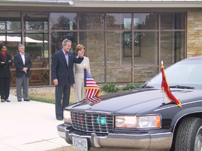 會談后,布什總統駕車陪同江主席夫婦參觀他的牧場。中午布什夫婦在家中設宴款待江澤民和夫人。